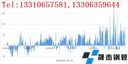 基于以上兩點(diǎn),我們把國內(nèi)的PB粉價格和掉期當(dāng)月價格折算港口現(xiàn)貨后,就能明顯發(fā)現(xiàn),從2020年之后,這兩個的價差就明顯的跨上了一個臺階,而且價差的波動幅度也創(chuàng)出了新高,這說明近年來,海外掉期價格比港口實際現(xiàn)貨價格更貴了。