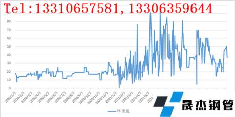 另外,我們再來看一下,港口的PB粉價格和麥克粉價格的價差,這兩個品種在含鐵量上相差不多,同時就是小指標(biāo)含量有一定的差異,所以之前一直維持一個穩(wěn)定的價差,但是現(xiàn)在這個價差也出現(xiàn)了明顯的擴(kuò)張,這表明,在同樣差不多的品質(zhì)里面,PB粉相對來說更貴了。