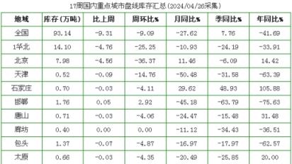 繼上周樂鋼一條棒材線復(fù)產(chǎn)后,本周樂鋼再開一條棒材線生產(chǎn)螺紋,不過盤螺繼續(xù)停產(chǎn)。敬業(yè)產(chǎn)量維持不變,而東華本周建材線全部停產(chǎn),唐山鑫達仍然停產(chǎn)。從產(chǎn)量變化來看,本周華北地區(qū)無縫鋼管廠家整體建材總產(chǎn)量變化不大,仍然保持低位運行。從市場到貨情況來看,受無縫鋼管廠家直發(fā)工地、無縫鋼管廠家資源集港等因素影響,本周,京津冀地區(qū)市場到貨情況較差的局面仍未得到明顯改善,社庫進一步下降,市場資源進一步減少。資源短缺致使商家惜售心態(tài)強烈,這也是本周現(xiàn)貨端較期貨端韌性更強的原因之一,對現(xiàn)貨價格起到較強的支撐作用。本周北京建材庫存55.16萬噸,較上周減少5.47萬噸。天津建材庫存為8.2萬噸,比上周減少1.77萬噸。唐山建材庫存為13.43萬噸,比上周減少1.21萬噸。市場庫存消化速度較快。
