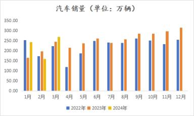 據(jù)中國(guó)汽車工業(yè)協(xié)會(huì)統(tǒng)計(jì),2024年3月,汽車產(chǎn)銷分別完成268.7萬(wàn)輛和269.4萬(wàn)輛,環(huán)比分別增長(zhǎng)78.4%和70.2%,同比分別增長(zhǎng)4%和9.9%。2024年1-3月,汽車產(chǎn)銷分別完成660.6萬(wàn)輛和672萬(wàn)輛,同比分別增長(zhǎng)6.4%和10.6%。