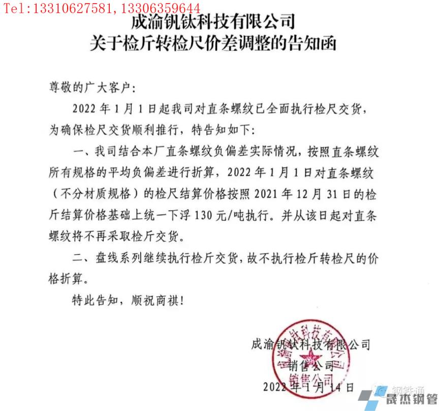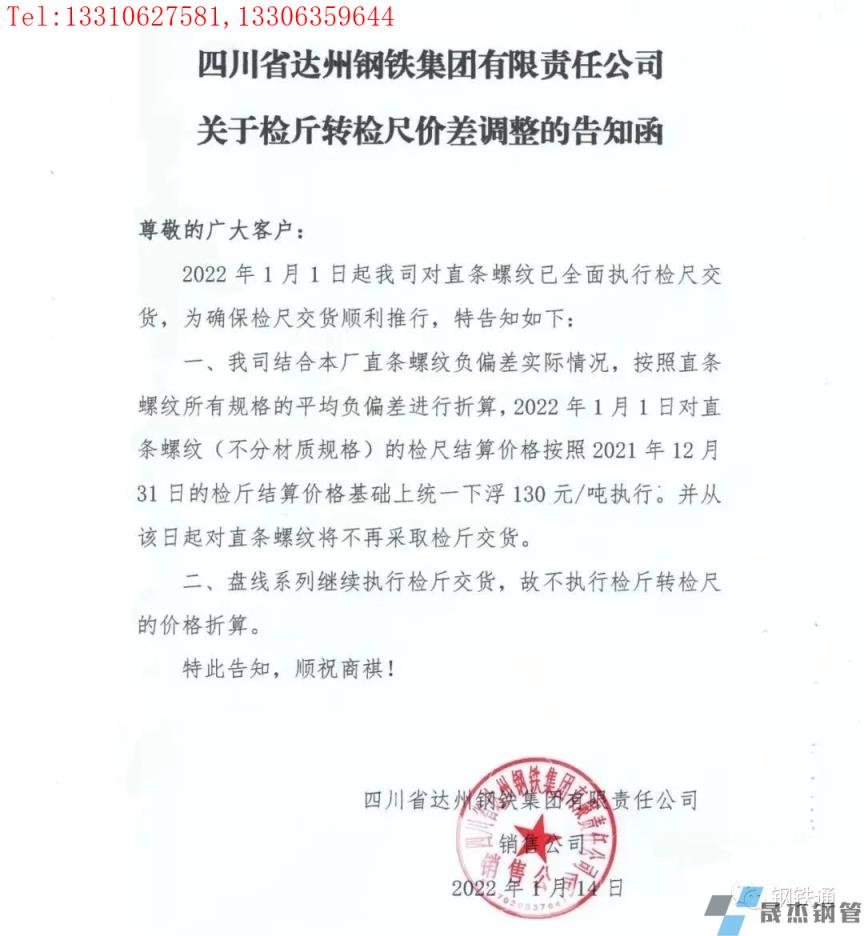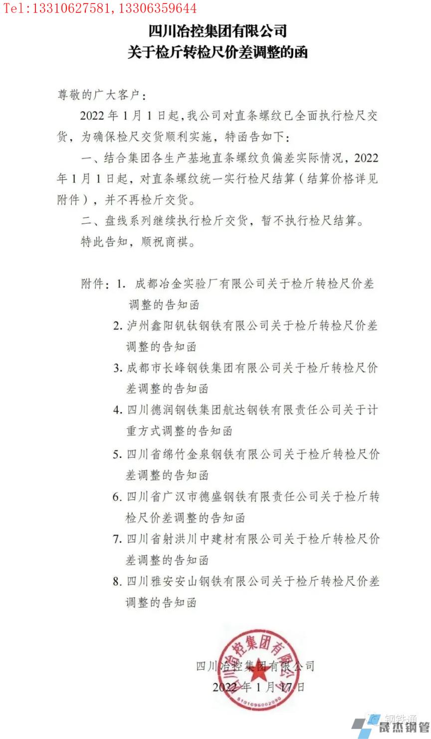 免責聲明:本網(wǎng)站(山東聊城晟杰無縫鋼管廠www.androidrecoverysoftware.com)刊載的“四川多家鋼企發(fā)布檢斤轉檢尺價差調整通知”等均源于網(wǎng)絡,版權歸原作者所有,且僅代表原作者觀點,本文所載信息僅供參考。轉載僅為學習與交流之目的,如無意中侵犯您的合法權益,請及時聯(lián)系刪除。本網(wǎng)站刊登此篇文章并不意味著本站贊同其觀點或證實其內容的真實性,我們不對其科學性、嚴肅性等作任何形式的保證。如果侵犯了您的版權,請盡快聯(lián)系我們予以撤銷,謝謝合作!