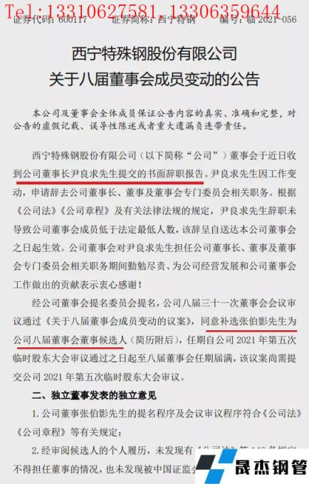 西寧特鋼董事長(zhǎng)尹良求、總工苗紅生辭職!張伯影擬任董事!