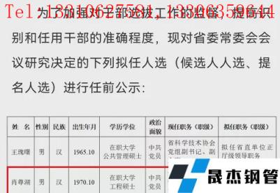 此前,2021年12月12日,湖南日?qǐng)?bào)發(fā)布湖南省委對(duì)王瑰曙、肖尊湖的任前公示,湖南華菱漣源鋼鐵有限公司黨委書記、執(zhí)行董事擬任湖南省管企業(yè)正職。