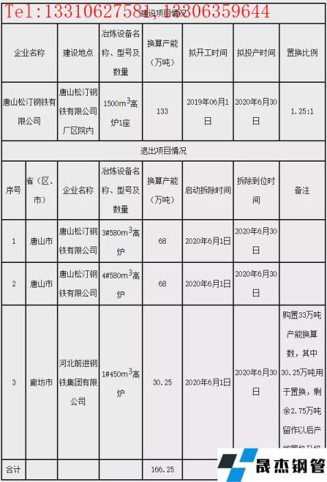 唐山松汀鋼鐵煉鐵建設(shè)項(xiàng)目產(chǎn)能置換方案公告