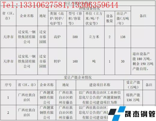 12月31日,天津市工信局發(fā)布遷安軋一鋼鐵集團(tuán)有限公司產(chǎn)能出讓公告。遷安軋一鋼鐵集團(tuán)有限公司出讓580m3高爐2座和160t轉(zhuǎn)爐1座設(shè)備給廣西翅冀鋼鐵,共計(jì)出讓煉鐵產(chǎn)能136萬噸,煉鋼產(chǎn)能30萬噸。