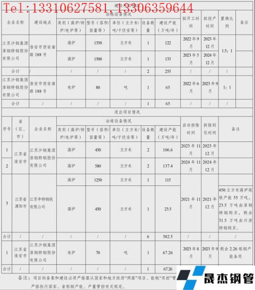 同時(shí),江蘇沙鋼集團(tuán)淮鋼特鋼股份有限公司退出450m3高爐2座、580m3高爐2座和70t電爐1座;江蘇申特鋼鐵有限公司退出1250m3高爐1座和450m3高爐1座。所有項(xiàng)目共計(jì)退出煉鐵產(chǎn)能382.5萬噸/年,煉鋼產(chǎn)能67.26萬噸/年。
