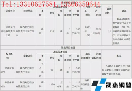 12月24日,陜西省工信廳發(fā)布陜西龍門鋼鐵建設(shè)項(xiàng)目產(chǎn)能置換調(diào)整方案。方案表明,陜西龍門鋼鐵擬于2023年10月在現(xiàn)場區(qū)內(nèi)新建135t電爐1座,產(chǎn)能105萬噸/年,預(yù)計(jì)2024年10月投產(chǎn)。同時(shí)計(jì)劃退出94t合金轉(zhuǎn)爐1座,產(chǎn)能109萬噸/年;1280m3高爐1座,產(chǎn)能118萬噸/年,并于電爐項(xiàng)目投運(yùn)前拆除到位。