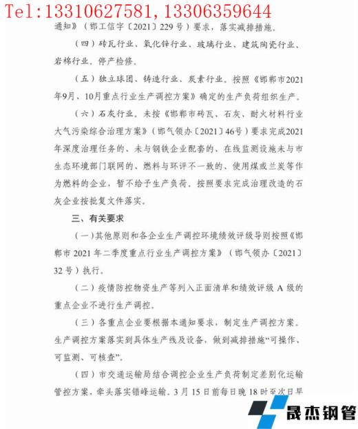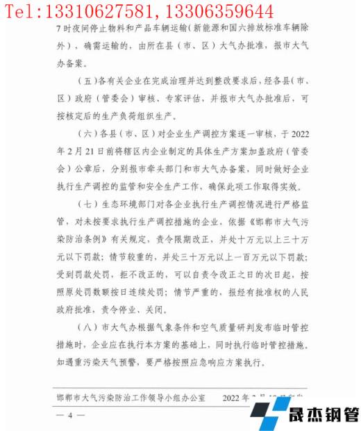 日前,邯鄲市大氣污染防治工作領(lǐng)導(dǎo)小組辦公室印發(fā)了《邯鄲市2022年2月21日至3月31日重點(diǎn)行業(yè)生產(chǎn)調(diào)控方案》。方案中對2022年2月21日至3月31日時(shí)段內(nèi)的鋼鐵、焦化、水泥、獨(dú)立球團(tuán)、鑄造、炭素等重點(diǎn)行業(yè)開展停限產(chǎn)措施。