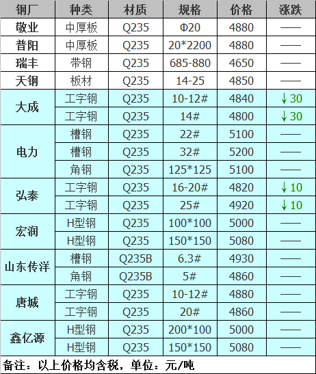1月18日秦皇島安豐廢鋼下調(diào)20元:圓鋼頭沖豆3680模具鋼大-法蘭片、50厚上重型3660大槽鋼大H型鋼火車大梁3580,無(wú)油汽車大梁、汽車弓子3460,2厚馬碲鐵3460冷板小料3480三角矽鋼片3480不含稅。