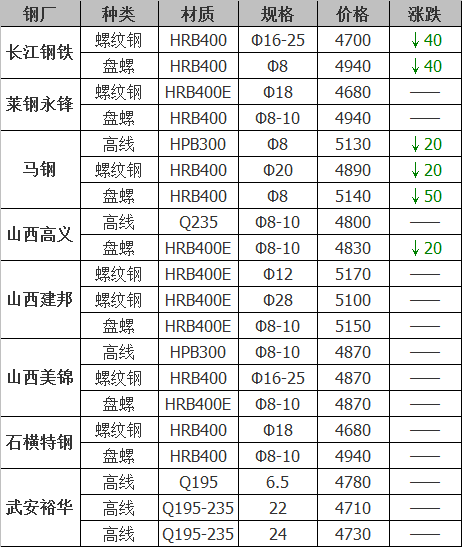 跌幅最大為長(zhǎng)江鋼鐵建材;
