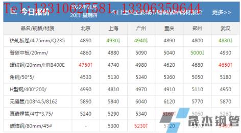中厚板全國23個主要市場14-20mm普中板平均價格5031元/噸,較上個交易日上調(diào)1元/噸。