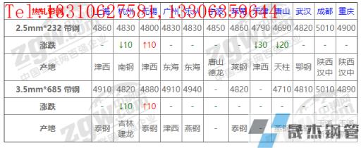 全國(guó)10個(gè)主要市場(chǎng)3.5mm*685 帶鋼平均價(jià)格4870元/噸,較上個(gè)交易日下調(diào)10元/噸。