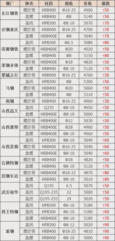 上調(diào)16家,占比100%,調(diào)價(jià)幅度30-90元/噸;