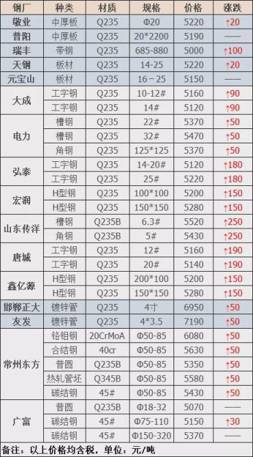 8日秦皇島安豐執(zhí)行價(jià)上調(diào)20,調(diào)后:圓鋼頭、沖豆3820,模具鋼、大法蘭片、50厚上重型3800,大槽鋼、大H型鋼、火車大梁3720,無油汽車大梁、汽車弓子3600,2厚馬碲鐵3600,冷板小料3620,三角矽鋼片3620,不含稅,單位:元/噸 。
