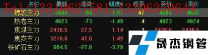 今日螺紋主力期貨跌94,收?qǐng)?bào)4686,跌幅1.97%;熱卷主力跌73,收?qǐng)?bào)4823,跌幅1.49%;焦煤主力漲27.5,收?qǐng)?bào)2438.5,漲幅1.14%;焦炭主力漲47,收?qǐng)?bào)3210,漲幅1.49%;鐵礦石主力跌27,收?qǐng)?bào)684.5,跌幅3.79%。
