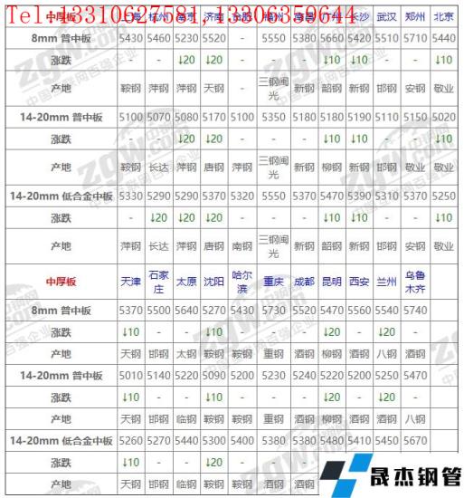 全國23個主要市場14-20mm 低合金中板平均價格5380元/噸,較上個交易日下調(diào)8元/噸。