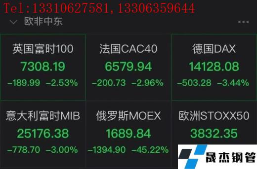 英國富時100指數(shù)、法國CAC40指數(shù)、德國DAX指數(shù)、意大利MIB指數(shù)均已暴跌。截至目前,分別跌2.53%、2.96%、3.44%、3.00%,俄羅斯MOEX下跌45.22%。