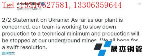 貿易消息人士稱,烏克蘭的幾家鋼鐵廠,包括管道制造集團 Interpipe以及位于馬里烏波爾的 Azovstal 和 Ilyich 無縫鋼管廠家,都是 Metinvest 的一部分,已經停止生產和運輸。Interpipe 向 Platts 證實,它已于2月初停止生產和發(fā)貨。2月24日開始罷工。