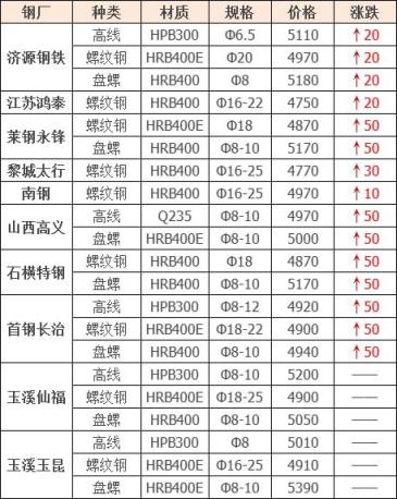上調(diào)8家,占比80%,調(diào)價(jià)幅度10-50元/噸;