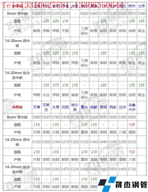 全國23個(gè)主要市場14-20mm 低合金中板平均價(jià)格5489元/噸,較上個(gè)交易日下調(diào)8元/噸。