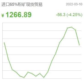 3月11日,根據(jù)今日鐵礦的消息來(lái)看,本周進(jìn)口鐵礦石價(jià)格整體下跌,而國(guó)產(chǎn)鐵礦價(jià)格走勢(shì)良好。分類(lèi)別來(lái)看,進(jìn)口65%粉礦現(xiàn)貨貿(mào)易價(jià)格1266.89元/噸,較前一個(gè)交易日下跌56.3,跌幅4.25%;進(jìn)口65%粉礦到岸價(jià)格186.69美元/噸,較前一個(gè)交易日下跌2.26,跌幅1.2%;國(guó)產(chǎn)65鐵精礦漲0.91收于1057.58元/噸,漲幅0.09%;國(guó)產(chǎn)62%鐵精礦漲0.75收于944.37元/噸,漲幅0.08%。