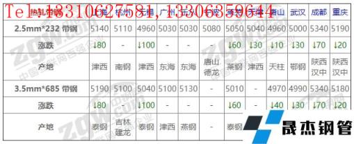 全國12個(gè)主要市場2.5mm*232 帶鋼平均價(jià)格5078元/噸,較上個(gè)交易日下調(diào)53元/噸。