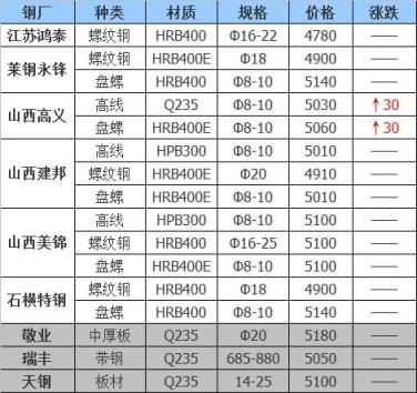 上調(diào)2家,占比12.5%,調(diào)價(jià)幅度20-30元/噸,