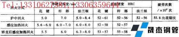 數(shù)據(jù)表明,感應(yīng)回火的疲勞壽命較爐中回火為高。其原因是,感應(yīng)快速加熱時(shí),最表層首先瞬時(shí)產(chǎn)生馬氏體分解,使體積收縮處于相變超塑性階段,待整體回火完成后表層形成更大的壓應(yīng)力,具有一個(gè)更理想的有利于提高疲勞強(qiáng)度的應(yīng)力分布;而爐內(nèi)加熱緩慢沒有這種條件。(3)半軸感應(yīng)加熱表面淬火舉例,40MnB鋼制造的帶法蘭半軸的表面淬火工藝技術(shù)要求見表8 ,其淬火工藝可以采用連續(xù)加熱淬火和整體一次加熱淬火,工藝參數(shù)見表9 和表10 。▼表840MnB鋼半軸表面感應(yīng)淬火技術(shù)要求