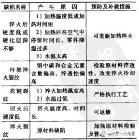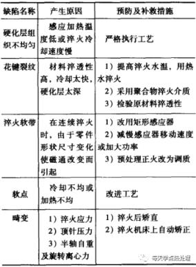 ▼表15半軸表面感應(yīng)淬火常見缺陷的預(yù)防及補(bǔ)救措施