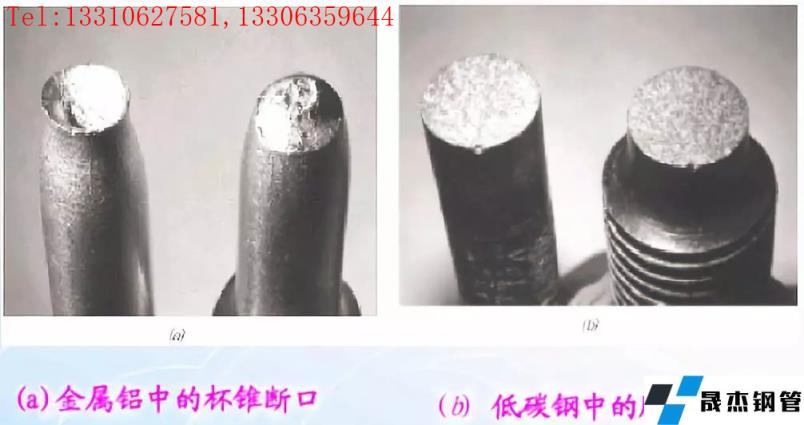 韌性斷裂是一個緩慢的斷裂過程,塑性變形與裂紋成長同時進行。裂紋萌生及亞穩(wěn)擴展阻力大、速度慢,材料在斷裂過程中需要不斷消耗相當(dāng)多的能量。隨著塑性變形的不斷增加,承載截面積減小,至材料承受的載荷超過了強度極限σb時,裂紋擴展達(dá)到臨界長度,發(fā)生韌性斷裂。