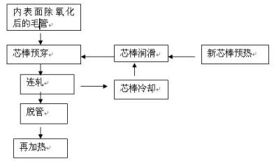 3) 正常軋制時,控制好芯棒工作段的溫度(80-1200C),這樣有利于迅速蒸發(fā)潤滑劑中的水分,石墨潤滑劑可以很好的附著在芯棒上,形成一層堅固的膜,保證軋制時的潤滑效果。若芯棒工作段的溫度過高,會使?jié)櫥瑒┲械娜軇┖芸烊空舭l(fā),石墨無法附著在芯棒上,達(dá)不到很好的潤滑效果。若溫度過低,潤滑劑也不能牢固附著,容易剝落。