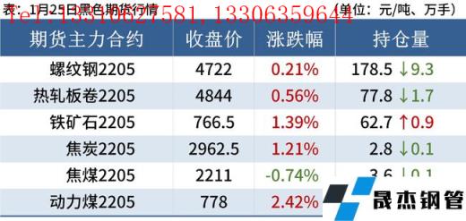 焦炭:1月25日,焦炭市場暫穩(wěn)運行。山西長治地區(qū)今日有環(huán)保部門會議,1月30日-3月13日冬奧會期間,區(qū)域內(nèi)焦企結(jié)焦時間延長至72小時限產(chǎn)政策影響;個別焦企明后兩天,環(huán)保管控結(jié)焦時間將延長至72小時,大部分焦企暫無接到冬奧會相關限產(chǎn)通知。本周焦企開工小幅上升,焦炭產(chǎn)量增加,下游無縫鋼管廠采購依舊積極,焦炭整體庫存也在低位,出貨無阻。冬奧會臨近,各個地區(qū)無縫鋼管廠限產(chǎn)預期較強,焦炭需求或有下降,無縫鋼管廠補庫情緒減弱。焦煤價格繼續(xù)維持高位,焦炭成本壓力依然較大,預計短期內(nèi)焦炭市場繼續(xù)偏穩(wěn)運行,后期需繼續(xù)關注環(huán)保政策、冬奧會、原料成本對焦炭價格的影響。