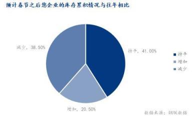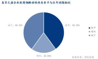 根據(jù)調(diào)研,春節(jié)之前企業(yè)優(yōu)特鋼棒材的庫存水平與往年同期相比近40%同比持平,40%無縫鋼管廠庫存同比下降,僅少數(shù)庫存有增加。預計春節(jié)后庫存累計情況與往年相比,四成為持平,四成為減少,兩成為增加。主要原因是目前來看,庫存的減少,導致資源的緊缺,貿(mào)易商會向廠家拿貨,無縫鋼管廠降庫會加快。
