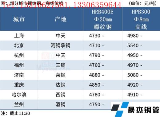 ◎北京:27日早盤(pán)建材市場(chǎng)價(jià)格持穩(wěn),河鋼小螺紋4800-4820,大螺紋4700-4710,盤(pán)螺4860。(單位:元/噸)