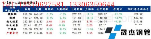 據(jù)統(tǒng)計(jì),本周五大品種周消費(fèi)量除熱軋板卷和中厚板,其余品種均有下降,合計(jì)周消費(fèi)降至757.09萬(wàn)噸,環(huán)比減少94.32萬(wàn)噸,降幅11.1%;上周五大品種周合計(jì)消費(fèi)851.41萬(wàn)噸,環(huán)比減少61.52萬(wàn)噸,降幅6.7%。從目前五大品種周消費(fèi)來(lái)看,春節(jié)臨近,休市在即,需求基本停滯,周消費(fèi)量預(yù)期內(nèi)下降。