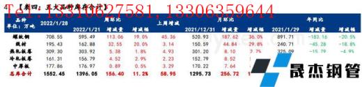 本周五大品種總庫(kù)存依然處于累庫(kù)趨勢(shì),其中廠庫(kù)周環(huán)比增2.7%,月環(huán)比增3.6%,年同比降30.7%;社庫(kù)周環(huán)比增14.9%,月環(huán)比增27.6%,年同比減3.4%;總庫(kù)存周環(huán)比增11.2%,月環(huán)比增19.8%,年同比減13%。綜合來(lái)看,目前庫(kù)存累增幅度依舊略低于預(yù)期,本周社庫(kù)雖然大幅累增近157萬(wàn)噸,但整體庫(kù)存水平依舊低于去年同期水平,主要原因在于2021年大面積執(zhí)行能耗雙控,粗鋼及鋼材同比減量,使得入庫(kù)資源和市場(chǎng)流入資源大幅減量影響。綜合來(lái)看,春節(jié)需求停滯,庫(kù)存必然延續(xù)性累增,加之目前最強(qiáng)雨雪天氣襲來(lái),碼頭、港口、陸路等卸貨均受阻,入庫(kù)節(jié)奏受限,因此節(jié)后增幅大概率比目前更加突出。