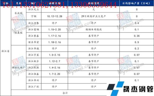 據(jù)調(diào)研,截至1月28日,浙江省內(nèi)無縫鋼管廠家已處于春節(jié)停產(chǎn)狀態(tài),日均影響產(chǎn)量較上周2.1萬噸相比維持不變。長流程無縫鋼管廠家浙江元立螺紋鋼生產(chǎn)目前正常;寧鋼1座2500立方高爐已點(diǎn)火復(fù)產(chǎn)。短流程無縫鋼管廠家浙江萬泰、浙江富鋼、浙江譽(yù)鑫、麗水華宏均受春節(jié)影響已經(jīng)處于停產(chǎn)狀態(tài),復(fù)產(chǎn)時間預(yù)計(jì)2月中旬左右,日均影響產(chǎn)量1.35萬噸;調(diào)坯軋材廠臨近春節(jié)的緣故,目前也皆處于停產(chǎn)狀態(tài),日均影響產(chǎn)量0.75萬噸,復(fù)產(chǎn)時間預(yù)計(jì)2月中旬左右。具體復(fù)產(chǎn)時間以無縫鋼管廠家公布時間為準(zhǔn)。綜合來看,浙江省內(nèi)無縫鋼管廠家總計(jì)日均影響產(chǎn)量2.1萬噸左右,較上周維持不變。具體檢修情況詳見下圖: