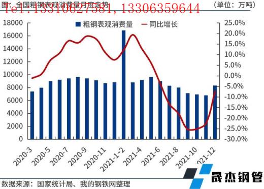 2021年12月份,全國(guó)粗鋼日均產(chǎn)量278.04萬(wàn)噸,環(huán)比大增20.3%,預(yù)計(jì)1月份產(chǎn)量變化不大。臨近春節(jié)假期,鋼市進(jìn)入傳統(tǒng)需求淡季。不過(guò),由于多部門(mén)集中出臺(tái)穩(wěn)增長(zhǎng)政策,市場(chǎng)情緒得到提振,加之無(wú)縫鋼管廠家集中補(bǔ)庫(kù),原燃料價(jià)格強(qiáng)勢(shì)上漲,推動(dòng)鋼價(jià)震蕩偏強(qiáng)運(yùn)行。今年我國(guó)基建投資有望發(fā)力,但房地產(chǎn)投資不容樂(lè)觀,鋼鐵消費(fèi)或弱于去年。如果節(jié)后無(wú)縫鋼管廠家適度控制產(chǎn)能釋放,合理安排復(fù)工復(fù)產(chǎn)進(jìn)度,實(shí)現(xiàn)供需動(dòng)態(tài)平衡,鋼價(jià)或延續(xù)震蕩偏強(qiáng)運(yùn)行。
