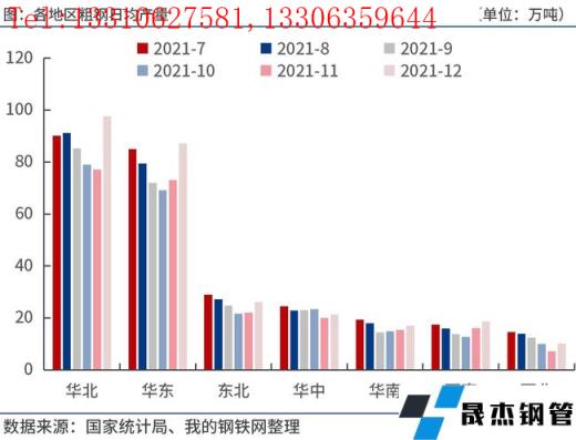 2021年12月份,華北、華東、東北、華中、華南、西南、西北等地區(qū)粗鋼日均產(chǎn)量分別為97.6萬(wàn)噸、87.1萬(wàn)噸、26.2萬(wàn)噸、21.4萬(wàn)噸、17.0萬(wàn)噸、18.7萬(wàn)噸和10.2萬(wàn)噸,分別較上月增加20.5萬(wàn)噸、14.0萬(wàn)噸、4.1萬(wàn)噸、1.3萬(wàn)噸、1.6萬(wàn)噸、2.6萬(wàn)噸和3.0萬(wàn)噸。