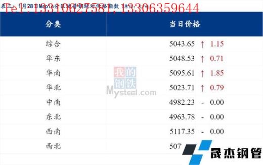 1月28日普鋼絕對(duì)價(jià)格指數(shù)變化:綜合指數(shù)5043.65,上漲1.15;螺紋鋼指數(shù)4822.08,持平0.0;線材指數(shù)5154.47,持平0.0;熱軋板卷指數(shù)4902.32,上漲1.19;冷軋板卷指數(shù)5399.03,持平0.0;中厚板指數(shù)5042.38,上漲0.13。