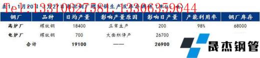 2、湖北省建材無縫厚壁鋼管廠家螺紋鋼日產(chǎn)量1.91萬噸,周環(huán)比減少0.25萬噸。檢修/限產(chǎn)影響建材日產(chǎn)量為2.69萬噸,產(chǎn)能利用率41.47%,周環(huán)比下降5.46%。