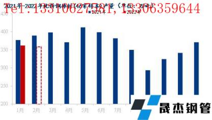 1月全國優(yōu)特鋼棒材(34家樣本)產(chǎn)量300萬噸,環(huán)比減少6.77萬噸,2月預(yù)計(jì)產(chǎn)量299萬噸;46家樣本1月產(chǎn)量362萬噸,環(huán)比減少8.87萬噸,2月預(yù)計(jì)產(chǎn)量358萬噸。1月優(yōu)特鋼棒材表需358萬噸環(huán)比下降38.58萬噸。