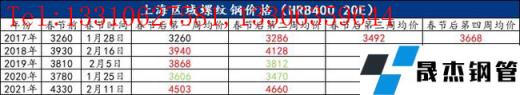 二:近五年上海建筑厚壁無縫鋼管春節(jié)均價走勢: