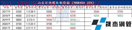 附:近五年山東建筑厚壁無(wú)縫鋼管春節(jié)均價(jià)走勢(shì):