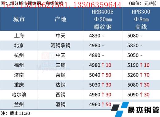 ◎福州:9日早盤建材市場價(jià)格小漲10,現(xiàn)線三鋼5190三寶5170,螺三鋼4980三寶4960大東海4960吳鐵4950,盤三鋼5260三寶5240。(單位:元/噸)