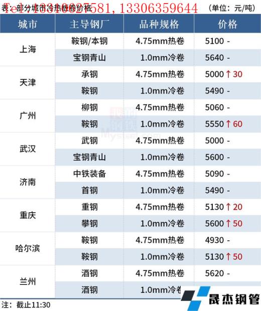 ◎上海:9日早盤熱卷市場價(jià)格暫穩(wěn),現(xiàn)主流報(bào)價(jià)1500普5080-5100元/噸,1800報(bào)5120-5150元/噸;1500錳5210元/噸,1800報(bào)5260元/噸左右,2.75Q235B報(bào)5200-5230元/噸,2.75SPHC報(bào)5320元/噸左右。(單位:元/噸)