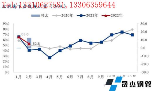 2022年2月東北螺紋南下計劃量為75.3萬噸,同比增加11.1萬噸環(huán)比增加0.5萬噸,盤線南下計劃量52.8萬噸,同比增加12.1萬噸環(huán)比減少12.2萬噸;1月東北螺紋南下實發(fā)量為74.8萬噸,同比減少8.7萬噸環(huán)比減少30.8萬噸,盤線南下實發(fā)量65.0萬噸,同比減少0.5萬噸環(huán)比減少13.6萬噸。受無縫厚壁鋼管廠家1月實際產(chǎn)量較計劃減量以及無縫厚壁鋼管廠家增加省內(nèi)投放等因素影響,1月螺紋和盤線的南下實發(fā)量較月初計劃分別減少19.1萬噸和27.9萬噸。