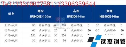 從區(qū)域價(jià)差來(lái)看,今日東北、華南、華中地區(qū)價(jià)格漲幅均高于杭州市場(chǎng)價(jià)格漲幅,區(qū)域價(jià)差正向擴(kuò)大;杭州市場(chǎng)與華北地區(qū)建筑厚壁無(wú)縫鋼管價(jià)差維持不變。