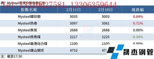 ◎ 2月11日,江蘇沙鋼出臺(tái)2月中旬出廠價(jià),螺紋鋼上調(diào)100、線材、盤螺上調(diào)100,現(xiàn)螺紋鋼5100、高線5310、盤螺5400。