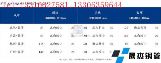 統(tǒng)一單位后,武漢高于長(zhǎng)沙53元/噸,南昌低于長(zhǎng)沙53元/噸,杭州高于長(zhǎng)沙1115元/噸,廣州高于長(zhǎng)沙14元/噸。長(zhǎng)沙資源可以流向南昌。